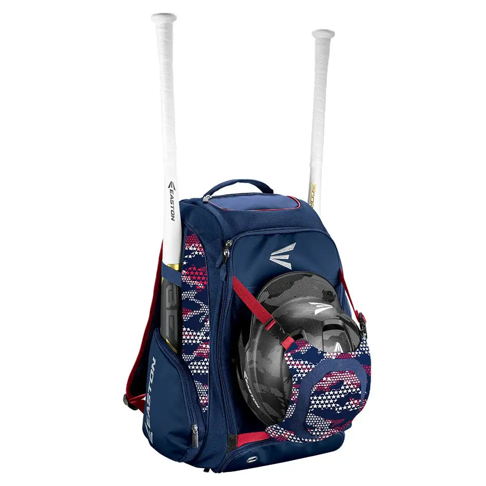 In addition, a vented shoe compartment allows for the separation of dirtied cleats from the rest of a player s equipment in this Easton bat pack. Felt lined top pockets contain personal items like cell phones or wallets while the player is in the middle of game play. Two side bat sleeves with personal zipped pockets keep the bat secure in handle side up form while traveling to and from the game. The two bat sleeve option in this Easton bat pack is ideal for the batter who appreciates having an alternative choice of bat in case they run into a slump or a broken bat and need a replacement. Lastly, a padded back with shoulder straps guarantees that this Easton baseball backpack will be anything but uncomfortable.