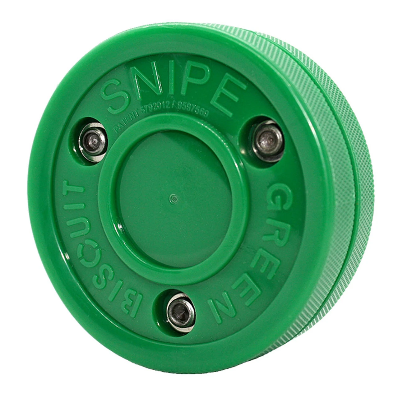 The new and improved SNIPE puck has arrived! The SNIPE puck features new tread on the edge of the puck to give an ice puck feel to your shots. Also, the SNIPE has new reinforced rivets for added durability. Like the Green Biscuit ORIGINAL, the SNIPE slides effortlessly on virtually any rough surface so you can play on driveways, parking lots, streets, basements, tennis courts, etc. Let those wrist shots, snappers and slap shots go! Get ready to Snipe!