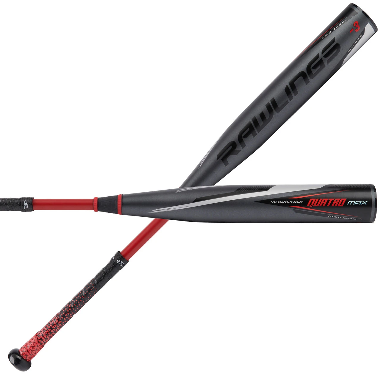 After years of tried and true performance, our Quatro Pro line of bats have been known for their balanced power. Now it’s time to usher in a new member of the Quatro family: the 2022 Quatro Max BBCOR baseball bat! It features industry-leading innovations, upgraded and improved materials, and a revamped interior construction too. It’s geared toward players who prefer a more end-loaded bat to provide max power at the plate. Go full send every time up with the innovative new Quatro Max! Its extended inner barrel design gives heavy hitters that more end-loaded feel than the traditional Quatro Pro has. As a result, it increases MOI and provides faster exit velocity for maximum power at the plate. In addition, its ultra-lightweight end cap accelerates your swing speed through the zone too! The Quatro Max was even engineered with a 30% stiffer handle, and improved collar construction, for more durability and optimal feel and performance with every cut.For added comfort and tack the Quatro Max BBCOR bats are equipped with Lizard Skin grip as well. These new Quatro Max bats are also equipped with a Blast Motion sensor enabled knob*. Just twist the sensor in the knob, and get access to valuable insights and advanced data that will help you improve your swing in real time. *Blast Motion Sensor sold separately. Comes with a 1 year manufacturer’s warranty from Rawlings.