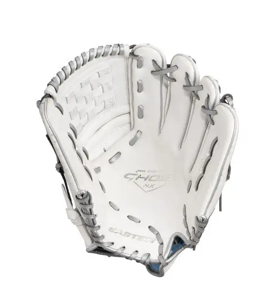 Easton’s Ghost series is a symbol of elite fastpitch play. The Ghost NX Glove fits right in. On the outside, the Game Ready Diamond Pro Steer leather and Flex Notch closure system make this glove super soft and easy to handle right away. The Quantum Closure System on the glove back ensures a perfect fit for every player, and the interior Ax Suede microfiber lining creates unmatched comfort and durability. On top of all these performance features, the striking white-and-blue colorway and professional-grade silver metallic rawhide lace are sure to turn heads.