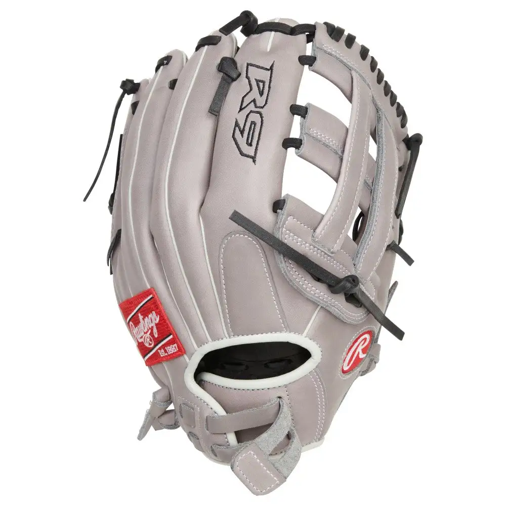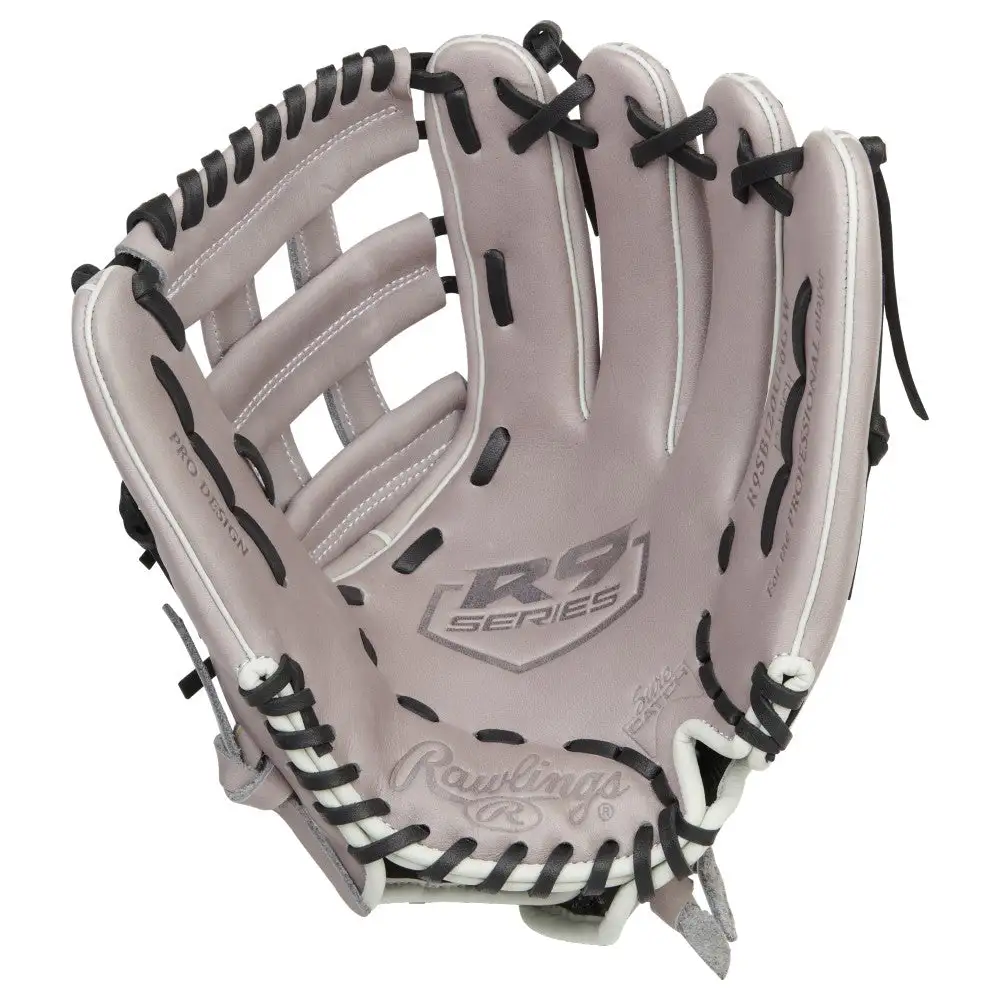 The Rawlings R9 gloves have a soft, comfortable feel thanks to the all leather palm and finger back linings. These softball gloves has a leather reinforced palm pad that will deaden the impact of the ball as it enters the glove. This 12 inch glove features a Pro-H web. This web and the size of the glove work together to provide a huge pocket. The size and web combo makes the glove a perfect choice for any position on the field. Since this is a Rawlings product, you can have full confidence in the quality of the glove. Rawlings has been a staple in baseball since 1887 and continues to be a top manufacturer in the baseball and softball industry. Buy one of these Rawlings R9 gloves today from Baseball Bargains!